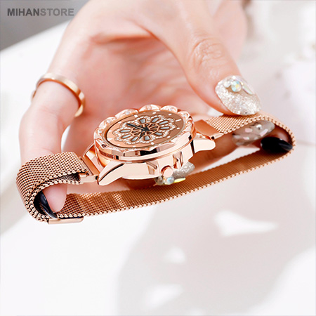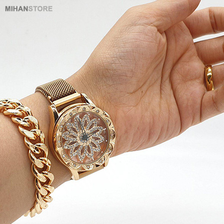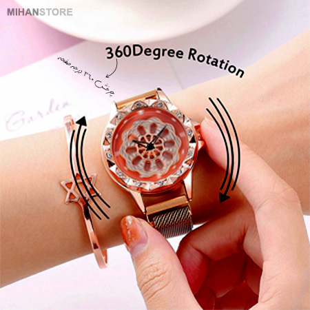 ساعت مچی Chanel مدل Rotation دارای جنس بند فلز قابل انعطاف و البته در رنگ های متنوع است. قفل ساعت مچی زنانه به صورت آهنربایی (مگنتی) می باشد که استفاده آن را بسیار راحت می کند و البته ظاهر شکیلی به محصول بخشیده است. نگین های بسیار زیبایی در این ساعت کار شده که جلای خاصی به وجاهت آن بخشیده است. از ویژگی های منحصر به فرد این ساعت مچی این است که صفحه ساعت با جا به جایی، حرکت می کند.
