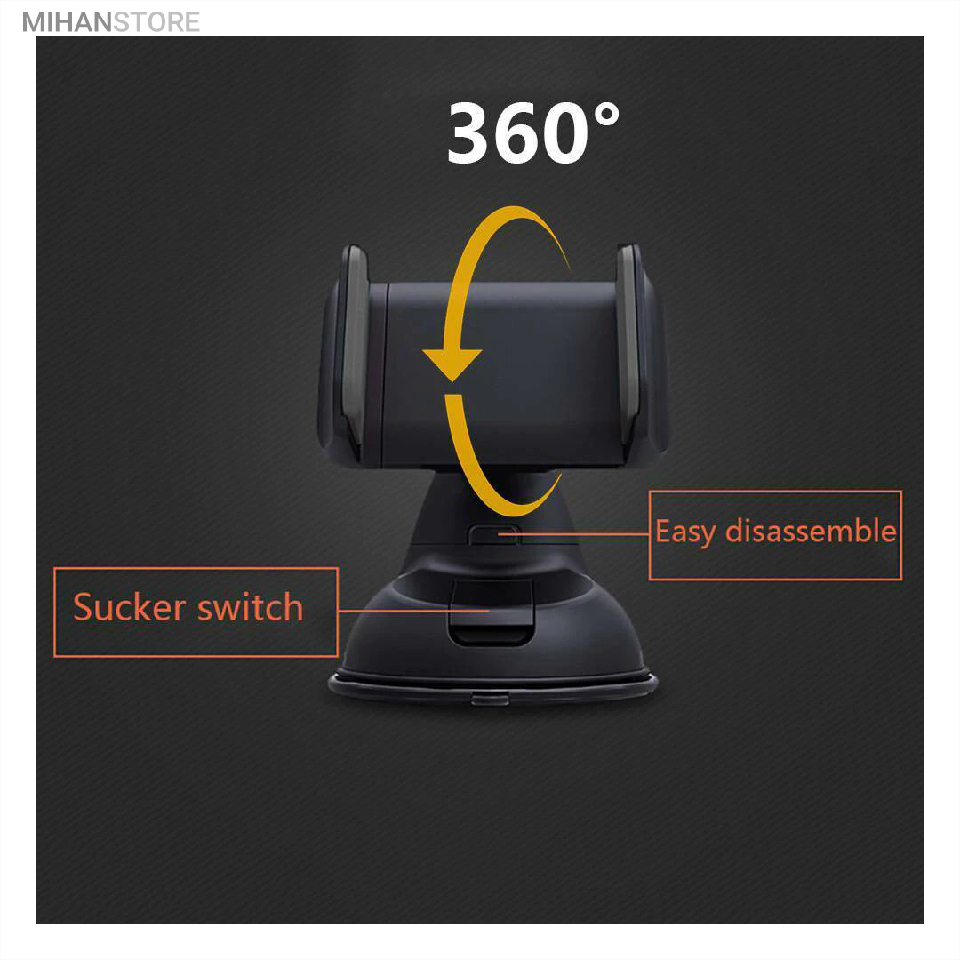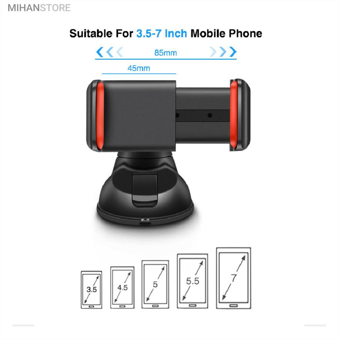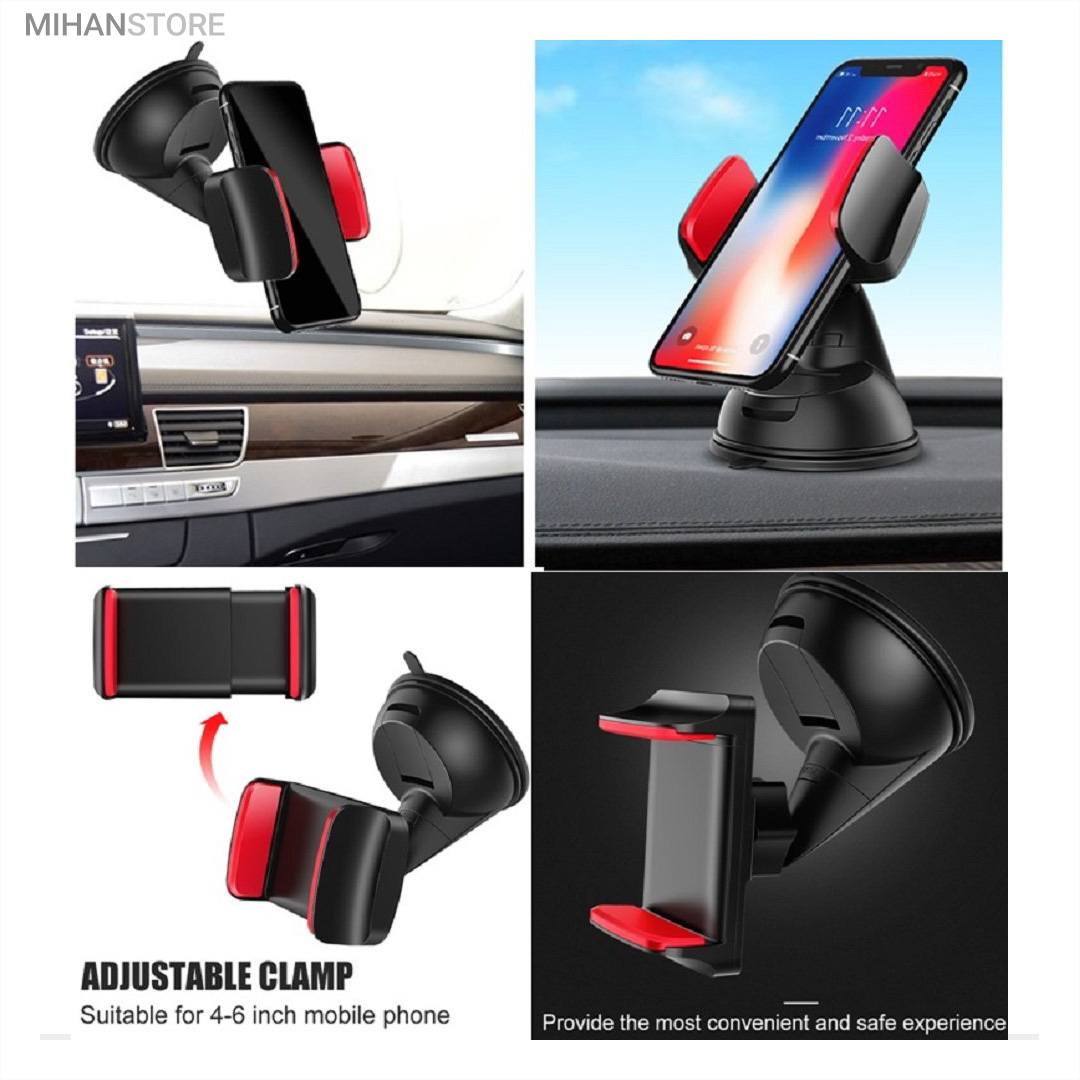 پایه نگهدارنده گوشی موبایل با بادکش های لاستیکی بسیار قوی قابلیت چسبندگی برروی هر سطحی از جمله داشبورد خودرو، شیشه جلویی اتومبیل، میز کار و غیره را خواهد داشت. جنس بدنه این هولدر از پلاستیک بوده و در قسمت گیرهای از پوشش سیلیکون برای جلوگیری از لیز خوردن گوشی موبایل استفاده شده است. با استفاده از هولدر موبایل ذکر شده امکان چرخش 360 درجه و یا قرار گرفتن در حالت عمودی و افقی امکان پذیر میباشد، که در هنگام رانندگی آسودگی خاطر بالایی برای راننده فراهم میآورد. این پایه نگهدارنده گوشی موبایل برای گوشی های هوشمند با سایز حداکثر 6 اینج مناسب میباشد. پایه سیلیکونی که به کمک بادکشی بودن به سطوح وصل میشود جوری که طراحی شده که شما میتوانید بارها پایه را جدا کنید و جابجا کنید و مثل روز اول با همان مقاومت به سطح وصل شود و اگر در مجاورت گردو خاک چسبندگی سیلیکون کم شد فقط کافیست پایه را بشورید و استفاده کنید.