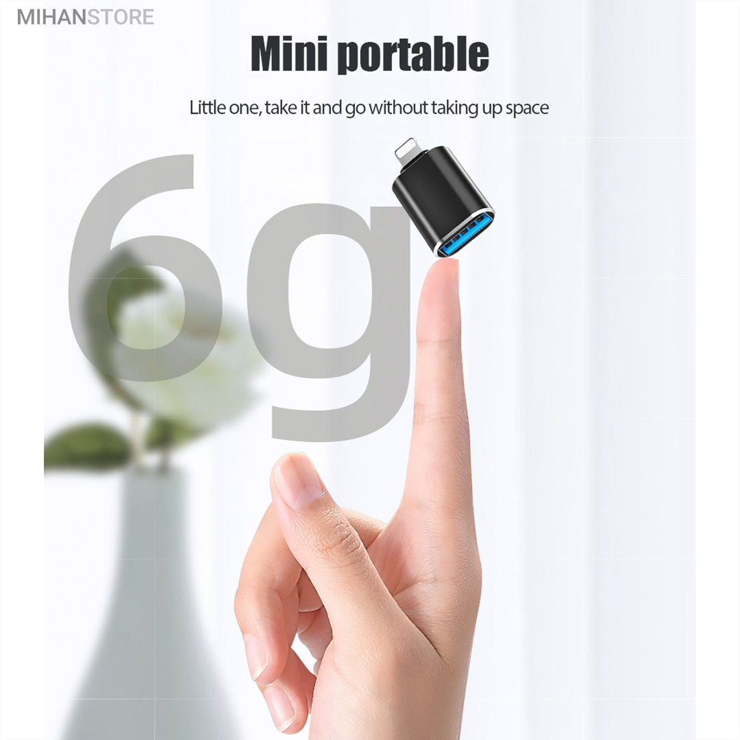 OTG لایتنینگ یک مبدل بدون نیاز به نصب نرم افزار، مخصوص گوشی و تبلت های اپل با سرعت بالاست، از آنجایی که این محصول به تازگی به تولید رسیده و با تکنولوژی روز هماهنگ است میبایست ورژن IOS دستگاه از 13 بالاتر باشد. جنس بدنه این OTG الومینیومی و سخت است، بدون نصب هیچ گونه نرم افزاری با سرعت بسیار بالایی کار میکند و کارکردن با آن بسیار ساده است، حداکثر توان خروجی این مبدل 200 میلی آمپر و سرعت انتقال داده آن به لطف تکنولوژی USB 3.0 به عدد واقعی 625MB/s میرسد. همچنین با داشتن این OTG میتوانید دستگاه هایی مانند فلش مموری، هارد اکسترنال، هاب یو اس بی، موس، کیبورد، دسته بازی و دوربین عکاسی را به موبایلتان متصل کنید و حتی از دستگاه های دیگر که قابلیت شارژ کردن دارند(مانند: موبایل ها و یا اسپیکر هایی که قابلیت پاوربانک دارند) برای شارژ کردن موبایلتان استفاده کنید، هچنین دیگر نیازی نیست حافظه دوربین را خارج کنید! میتوانید با اتصال مستقیم مبدل به دوربین از طریق کابل تمامی عکس های ذخیره شده را در موبایلتان نگاه کنید، حذف کنید و یا به حافظه گوشی منتقل کنید و یا تصاویر و فیلم های گرفته شده با موبایل خود را به فلش یا هارد اکسترنال منتقل نمایید.