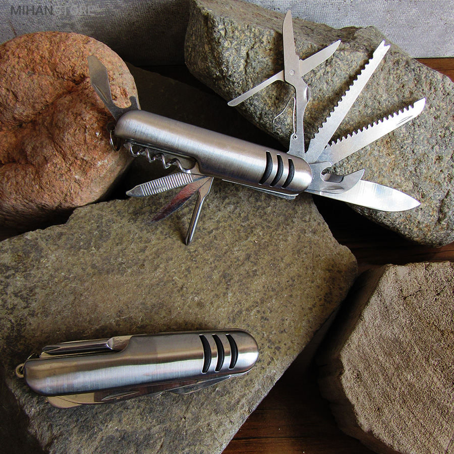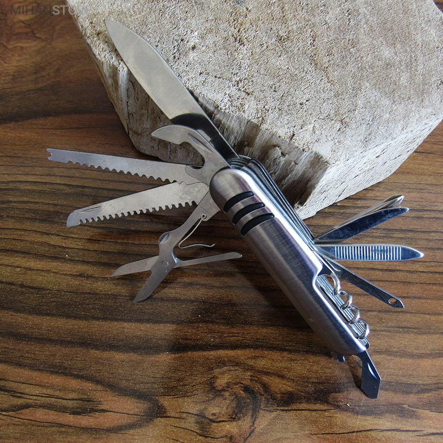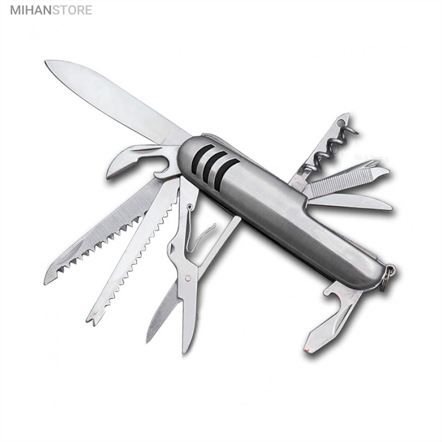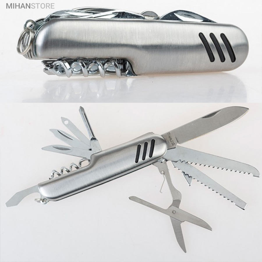 - ابزار 11 کاره شامل چاقو ، قیچی ، پیچ گوشتی ، درب باز کن ، انبر دستی ، چاقو اره ای و ...