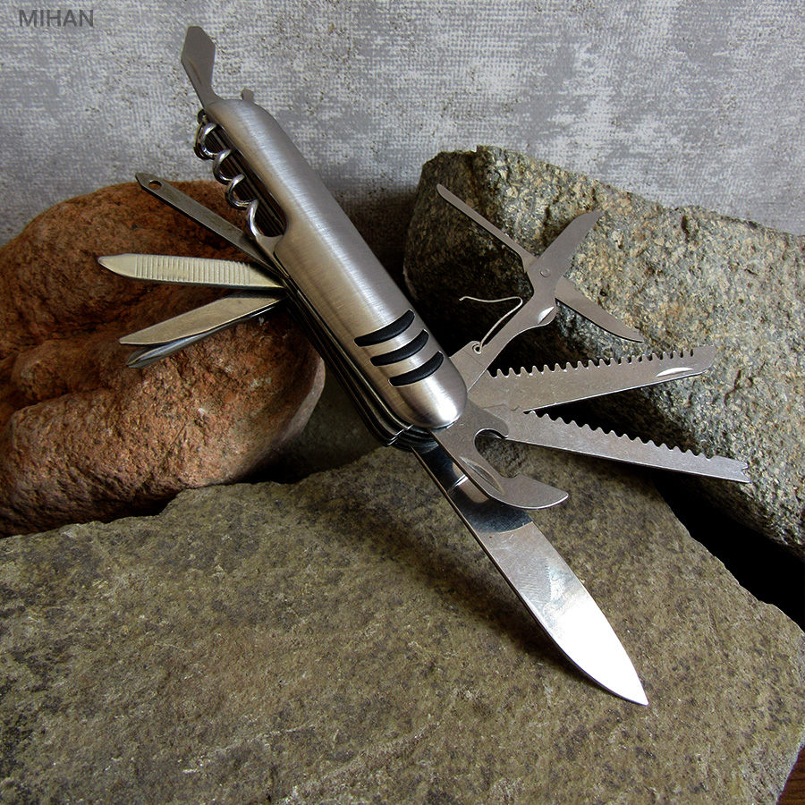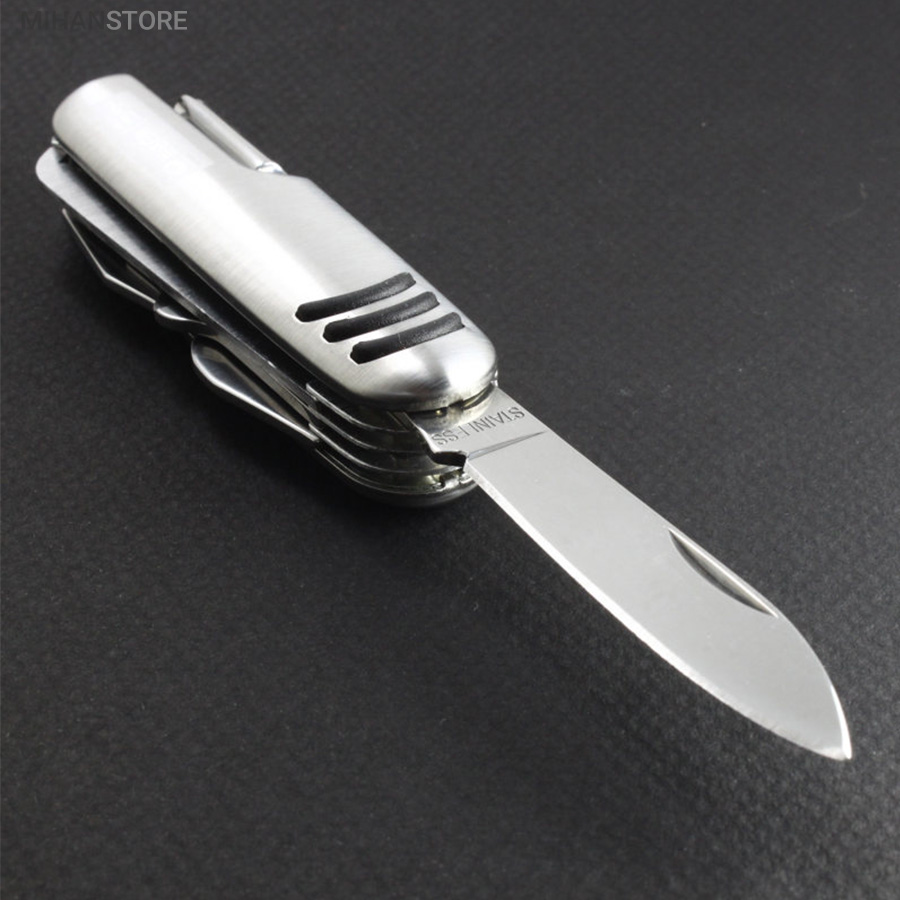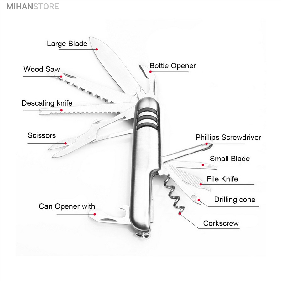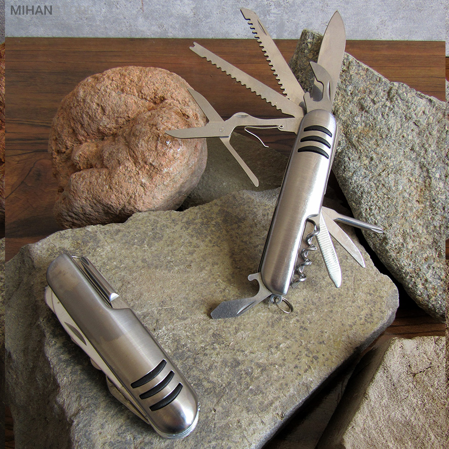 - ابزار 11 کاره شامل چاقو ، قیچی ، پیچ گوشتی ، درب باز کن ، انبر دستی ، چاقو اره ای و ...
