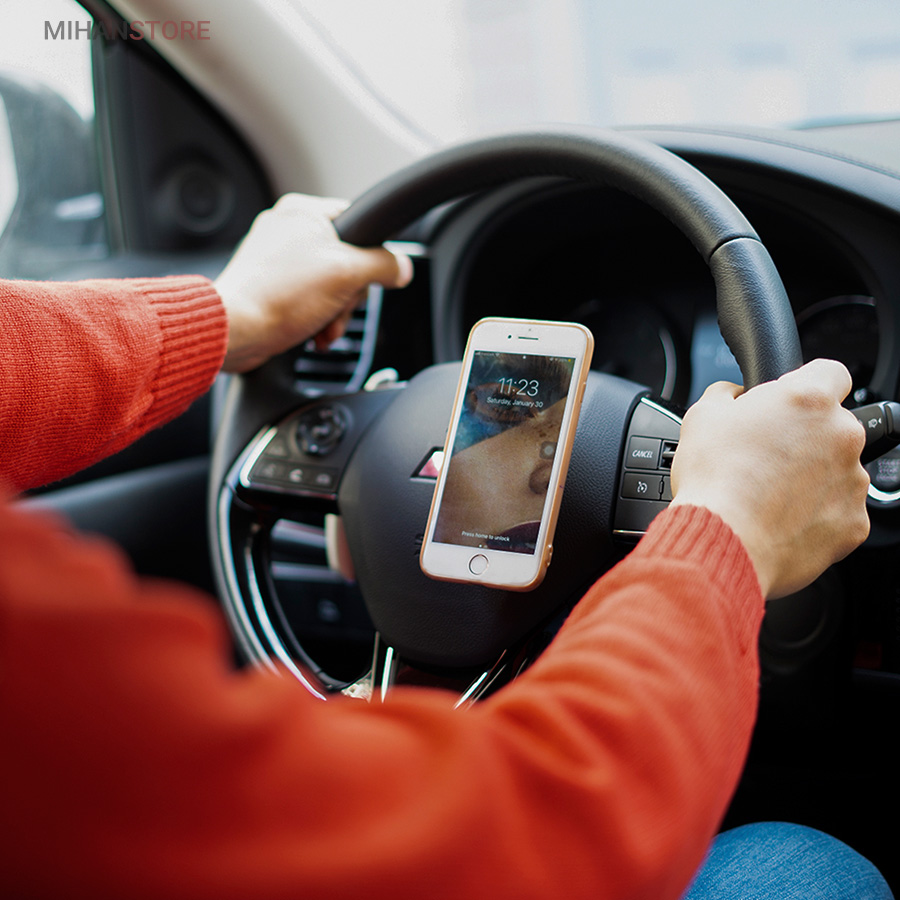 این هولدر یک صفحه کوچک است که به پشت گوشی متصل شده و صفحه دیگر بر روی فرمان ماشین یا ... متصل میشود که نحوه اتصال این صفحات به یکدیگر توسط چفت و بست خار مانند صورت میگیرد. این مدل نگهدارنده تلفن همراه در عین سادگی و اشغال فضای بسیار کم از انجاییکه روی وسط فرمان خودرو نصب می شود و گوشی دقیقا مقابل چشم راننده می باشد باعث تمرکز بیشتر راننده می شود، هولدر موبایل روی فرمان اسپینری قابلیت چرخشی دارد که این موضوع باعث می شود تلفن همراه شما در حالت ثابت قرار بگیرد و با چرخش فرمان نچرخد.