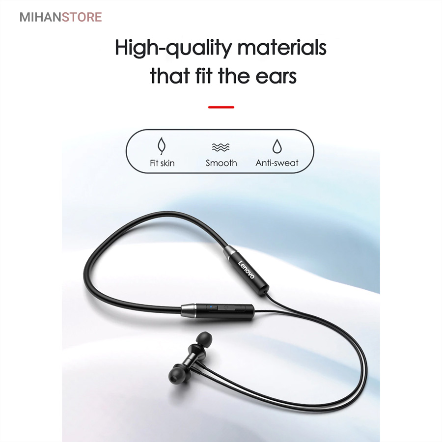 هندزفری بلوتوث گردنی Lenovo یک هندزفری بلوتوث گردنی میباشد که دارای کیفیت موسیقی و مکالمه بسیار خوب نسبت به قیمتش میباشد. در ضمن بسیار سبک و راحت مناسب استفاده طولانی مدت است. این هدفون گردنی از استاندارد ضد آب IPX5 برخوردار میباشد از اینرو یک هندزفری ورزشی نیز به حساب میآید. به معنای دیگر شما میتوانید از این هندزفری بلوتوث گردنی در ورزش یا زیر بارش باران نیز استفاده کنید. مخصوص علاقه مندان به ورزش که دوست دارند در حال دویدن و پیاده روی به موسیقی نیز گوش دهند. این هدفون به صورتی طراحی شده تا در استفاده دراز مدت گوشتان را اذیت نکند. یکی از دلایل این ویژگی وزن سبک این مدل است. نوار گردنی هدست که در پشت گردن قرار میگیرد که باعث میشود بدون ایجاد مزاحمت شما به کارهایتان برسید و موسیقی گوش دهید. روکش روی ایرفونهای هندزفری قابل جدا شدن است. این هدست مجهز به واحد درایور 10 میلی متر برای ایجاد باس عمیق و همچنین آواز نرم است. هدفون بی سیم لنوو دارای تراشه بلوتوثی نسخه 5.0 است که از طریق آن به گوشی، تبلت و یا لپ تاپ متصل میشود. برای این مدل بلوتوث نسخه 5.0 در نظر گرفته شده و برد بلوتوث این هدفون تا 10 متر محاسبه شده است. یک باتری 105 میلی آمپرساعت درون این هدست به کار رفته است که با یکبار شارژ می تواند 8 ساعت موزیک پخش کند. این هدست تا 120 ساعت نیز میتواند در حالت آماده به کار باشد. گفتنی است که در هنگام مکالمه هم تا 8 ساعت شارژ را نگه میدارد. یکی از دلایلی که این مدل را برای استفاده هنگام ورزش مناسب کرده، گواهی IPX5 است. این گواهی باعث شده تا این مدل نسبت به آب و رطوبت مقاوم باشد. این مدل به گردنی مجهز شده و این ویژگی باعث شده تا این هدفون از گوشتان نیافتد. هندزفری بلوتوث گردنی Lenovo صداهای موسیقی را در صورت استریو بودن برای شما stereo (دو کاناله) پخش میکند. در مجموع باید گفت صدای این هندزفری بلوتوث گردنی گرم و لذتبخش است.