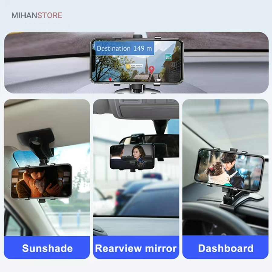 هولدر موبایل با قابلیت چرخش 360 درجه ای مخصوص ماشین بسیار شیک و کاربردی جهت نصب چند منظوره گیره مستحکم و بدون اسیب جهت نصب موبایل جنس محصول: محصولی با کیفیت بالا ساخته شده توسط پلاستیک ABS مقاوم میباشد طراحی مناسب و اصولی: پد سیلیکونی ضخیم زیر گیره ها و اسفنج های نگهدارنده برای محافظت کردن از تلفن همراه شما ساخته شده است. جهت نصب: هولدر نگهدارنده موبایل گیره ای روی داشبورد 360 درجه را میتوانید هرجایی نصب کنید مثل:  روی اینه وسط – روی داشبورد – میز کار و یا افتابگیر ماشین این هولدر به دلیل نداشتن چسب و یا اتصال دهنده های پمپی به راحتی و به تعداد دفعات نامحدود قابلیت تغییر مکان نصب را دارد قابلیت منحصر بفرد: هولدر از گیره های قدرتمندی ساخته شده پس نگران افتادن یا اسیب دیدن موبایل خود نباشید [استفاده آسان] برای نصب روی داشبورد، آینه عقب و آفتابگیر ماشین شما عالی است. دهانه نگهدارنده موبایل این هولدر، نگهداری مطمئن از موبایل شما در حین رانندگی های درون شهری و بیرون شهری که نگرانی افتادن موبایل را بطور کل از بین میبرد و علاوه بر این با طراحی عالی و داشتن پد و محافظ از اسیب زدن رساندن به سطح بدنه موبایل را ندارد. توانایی چرخش 360 درجه: می توانید تلفن خود را به صورت عمودی یا افقی قرار دهید، با هر زاویه ای که برای استفاده از نقشه های GPS راحت تر است طراحی عملکرد یک دست به شما امکان می دهد هنگام رانندگی دست خود را آزاد کنید.