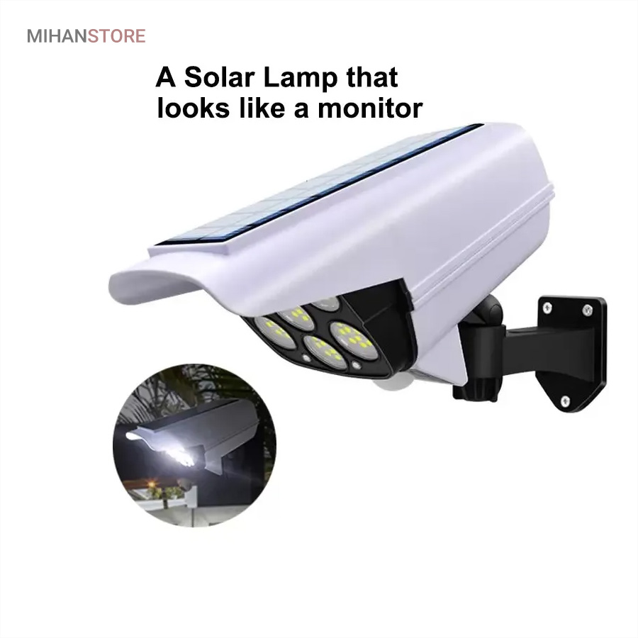 پروژکتور های خورشیدی طرح دوربین مدار بسته پروژکتور هایی هستند که حالت سیکوریتی دارند و حدودا بین 180 تا 200 وات نور تولید می کنند و شامل دو باتری لیتیومی 3.7 ولتی و پنل 3 واتی بزرگ هستند. دوربین های به کار رفته در این پروژکتور ها 2 باتری هستند و کیفیت بالاتری دارند در صورتی که دوربین های موجود در بازار به صورت تک باتری نیز وجود دارد. توانایی تابش 360 درجه دارند و پایه دارند. این نوع پروژکتور ها حتما باید زیر آفتاب باشند ولی در سایه نیز می توانند کار کنند اما نوری که ایجاد می کنند کمتر است و بازدهی کمتری دارند در این صورت باتری زودتر خراب می شود. بهتر است از این نوع پروژکتور ها در مکان های پر تردد استفاده شود. نور بسیار خوبی دارند و ارتفاع نصب آن ها بهتر است که بیش از 3 متر نباشد چرا که اگر سنسور PRD در ارتفاع بیش از 3 متر قرار گیرد حساسیت خود را از دست می دهد و قابلیتی که باید داشته باشد را ندارد. از روی پنل در این پروژکتور ها می توان متوجه خاموش یا روشن بودن آن شد به این صورت که مدار هایی درون آن وجود دارد که با تغییر ولتاژ از پنل و صفر شدن پنل، شب شدن یا تاریک شدن تشخیص داده می شود یعنی سنسور پتانسیلی دارند و همچنین دارای ریموت هستند. این نوع از پروژکتور ها را می توان زمان بندی کرد. این پروژکتور ها از پر فروش ترین جنس ها هستند.این یک لامپ دیواری خورشیدی با طراحی ظاهری دوربین مداربسته شبیه سازی است که می تواند در مکان های مختلف مانند دروازه ، راهرو ، حیاط و غیره نصب شود.