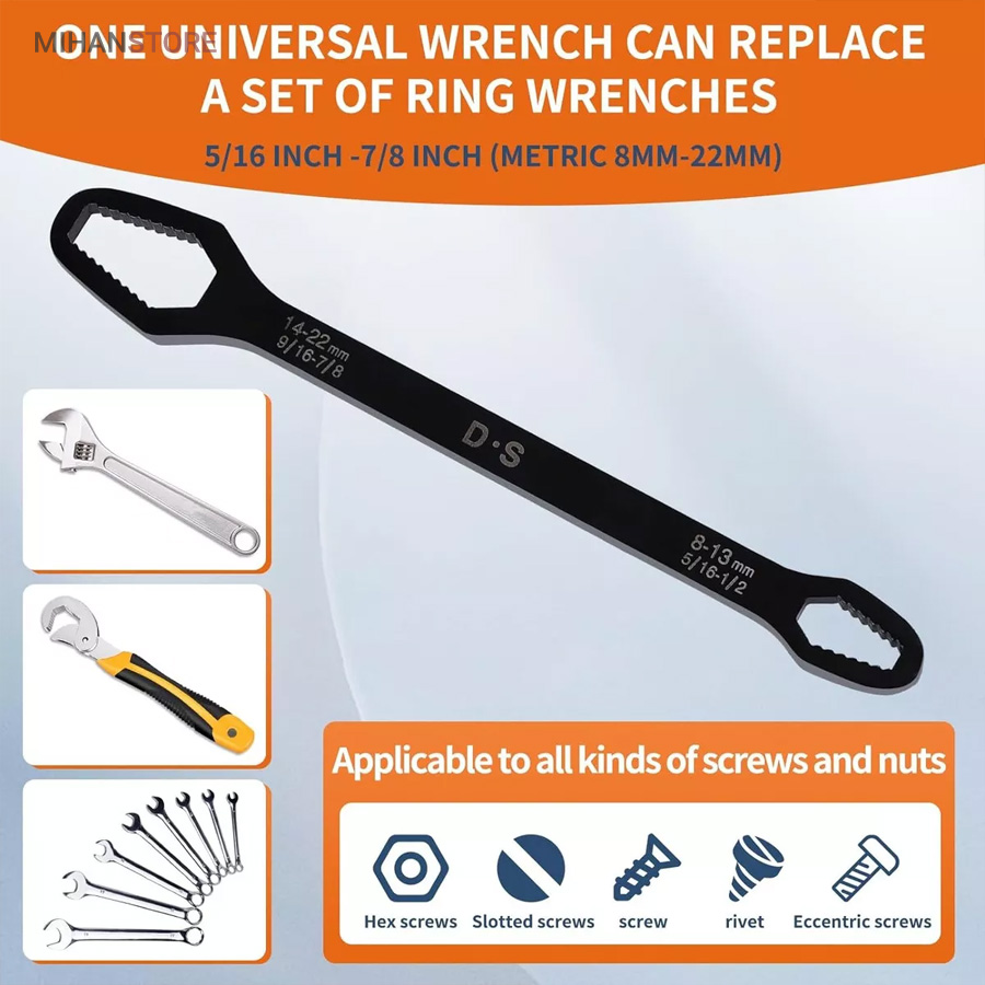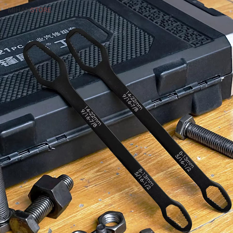 آچار دو سر رینگی همه کاره 8-22 مشکل بیشتر عاشقان ابزار و تمام فنی کاران را حل کرده است ، همیشه همراه داشتن یک کیف ابزار کامل بسیار دشوار و سنگین هست و در بیشتر مواقع آچار ها بیشترین وزن یک کیف ابزار به خود اختصاص می دهند ، آچار همه کاره دوسر رینگی 8-22 با دارا بودن 14 سایز از مهره بهترین جایزین ست های سنگین آچار های رینگی می باشند. با خرید آچار همه کاره دوسر رینگی دیگر از ناقص شدن آچارهای خود در زمان جابجایی کیف ابزار آسوه هستید، نیازی به حمل تعداد زیاد آچار ندارید و تنها یک آچار برای شما کفایت می کند. آلیاژ آچار همه کاره دوسر رینگی 8-22 از بالاترین کیفیت فولاد ساخته شده تا در برابر رطوبت و سایش مقاومت لازمه را داشته باشد. بهترین گزینه برای داخل ماشین و کسانی که کمپ می کنند یا دوچرخه سوارانی که فضای کمی برای حمل کیف ابزار های بزگ و پر سروصدا ندارند می باشد .