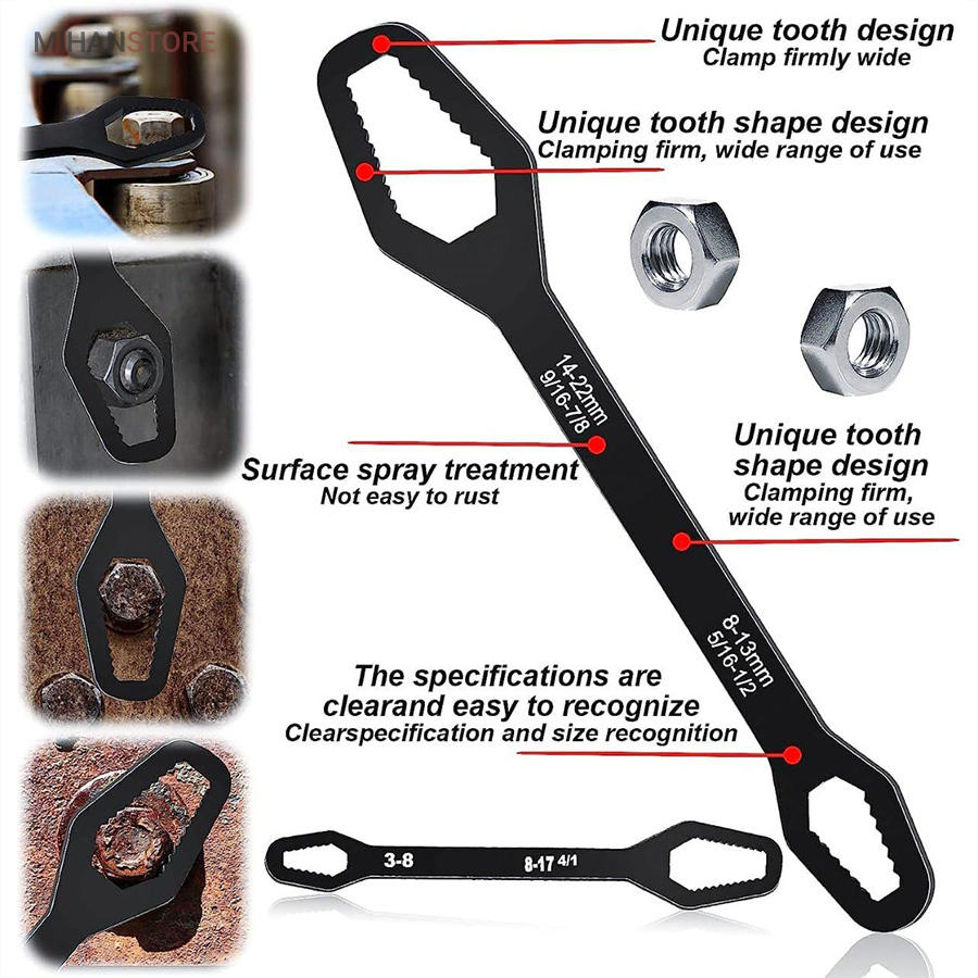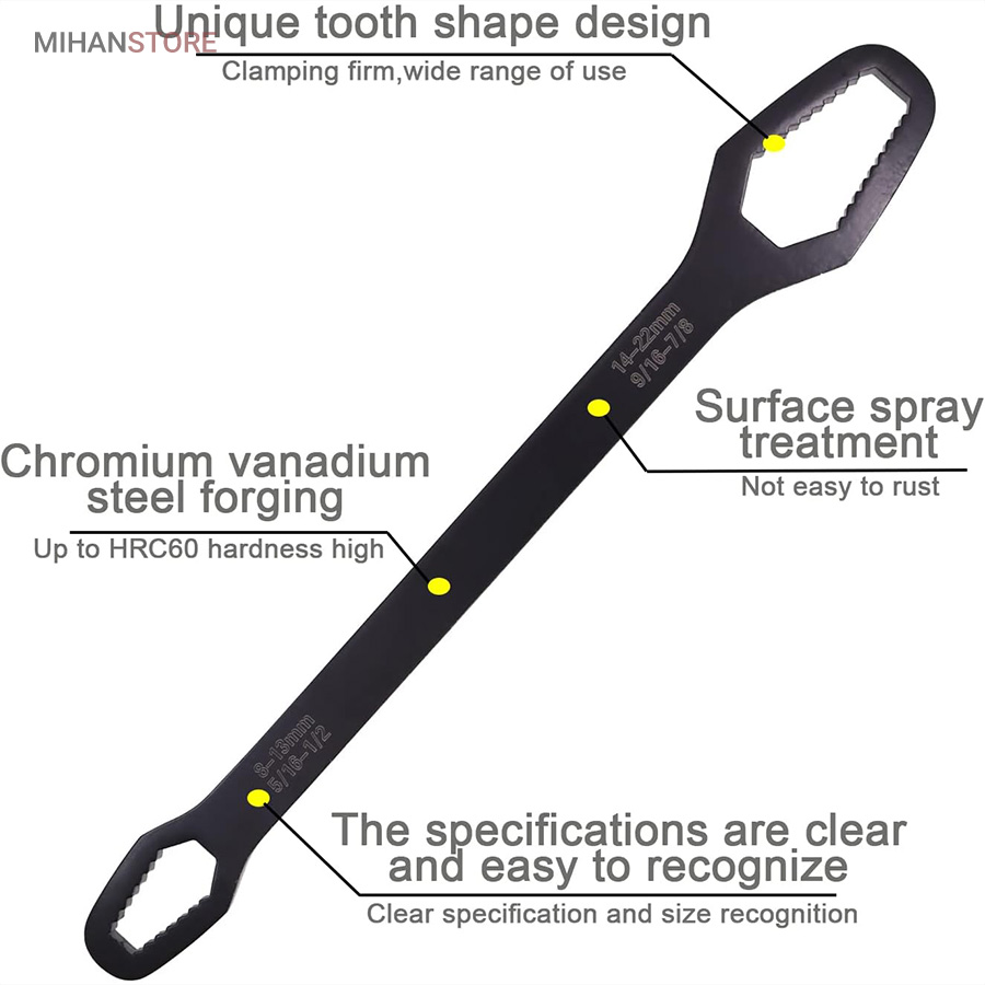 آچار چندکاره و دو طرفه ترکیبی بینظیر از قدرت، دوام و طراحی کاربرپسند است. با این ابزار منحصر به فرد، هرگز نیازی به چندین آچار و ابزار جداگانه نخواهید داشت. با استفاده از این ابزار به راحتی و با صرفهجویی در زمان و انرژی، کارهای خود را انجام دهید.