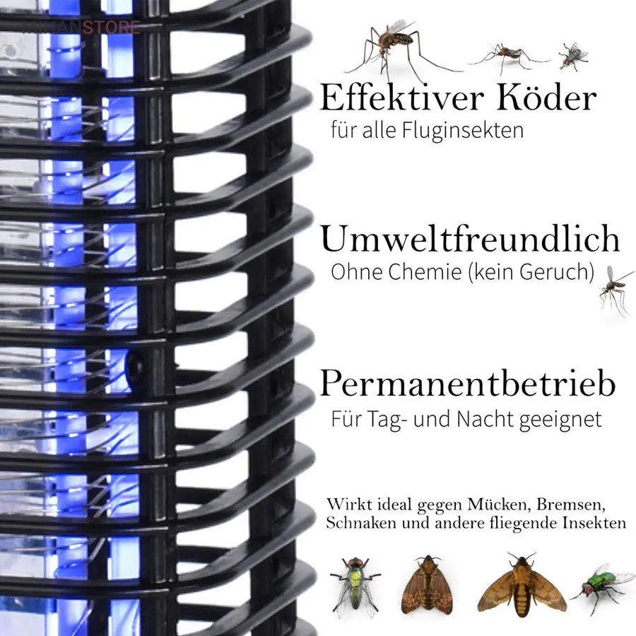 محصولی که خیال شما را از حشره ها و پشه ها راحت می کند. این محصول مناسب داخل خانه و بیرون خانه می باشد و در فضای کوچک و بزرگ قابل استفاده است. این محصول دارای موتور 360 درجه و لامپ UV پر قدرت می باشد که در هر صورت حشره ها را جذب کند. این محصول با تله لامپ 365 نانو متری قدرت بسیار زیادی در جذب حشرات دارد. قابلیت استفاده روی میز و زمین و قابل آویزان کردن می باشد. دارای سینی جدا شونده برای تمیز کردن حشرات می باشد.