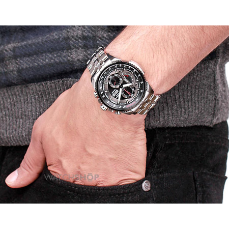 ساعت مچی مردانه کاسیو از جمله شیک ترین مدلهای ساعت مردانه می باشد. شرکت کاسیو یکی از بزرگترین شرکتها و کمپانیهای فعال در زمینه تولید و فروش ساعت مچی می باشد که سابقه ای بسیار طولانی و البته کاملا روشن در این زمینه دارد. یکی از جدیدترین و زیباترین مدل های این کمپانی ساعت مردانه EF 558 می باشد که دارای طراحی و کیفیت بی نظیر می باشد. از مزایای این مدل می توان به ضد آب بودن و دارا بود روز شمار (تقویم) این ساعت اشاره کرد. ساعت کاسیو EF558 در بسته بندی فوق العاده شیک همراه با 6 ماه گارانتی تعویض عرضه می شود.