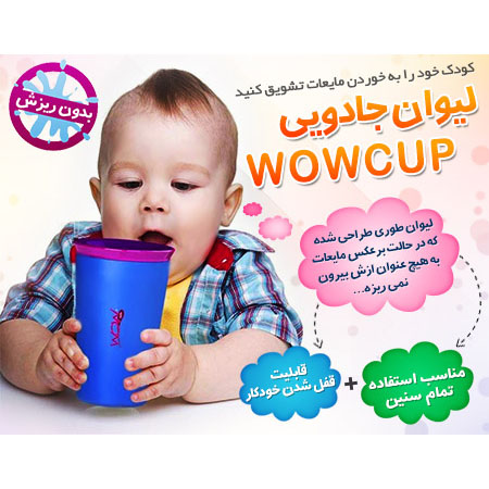 لیوان Wow Cup را می توانید به صورت 360 درجه بدون آن که قطره ای از مایع درون آن، به بیرون بریزد بچرخانید. مکانیسم نوآورانه لیوان با درپوشی دولایه که تنها با فشردن لب روی لایه بیرونی درپوش لیوان، مایع خارج میشود که این امر اجازه هدر رفتن و ریختن نوشیدنی را نمیدهد. از دیگر ویژگی های این لیوان دارا بودن تشتک سر پلاستیکی می باشد که مانع از آسیب دیدن و کج شدن دندان های کودک شما می شود. همچنین نوع طراحی و رنگ های شاد این محصول کودک شما را تشویق به نوشیدن مایعات خواهد کرد.